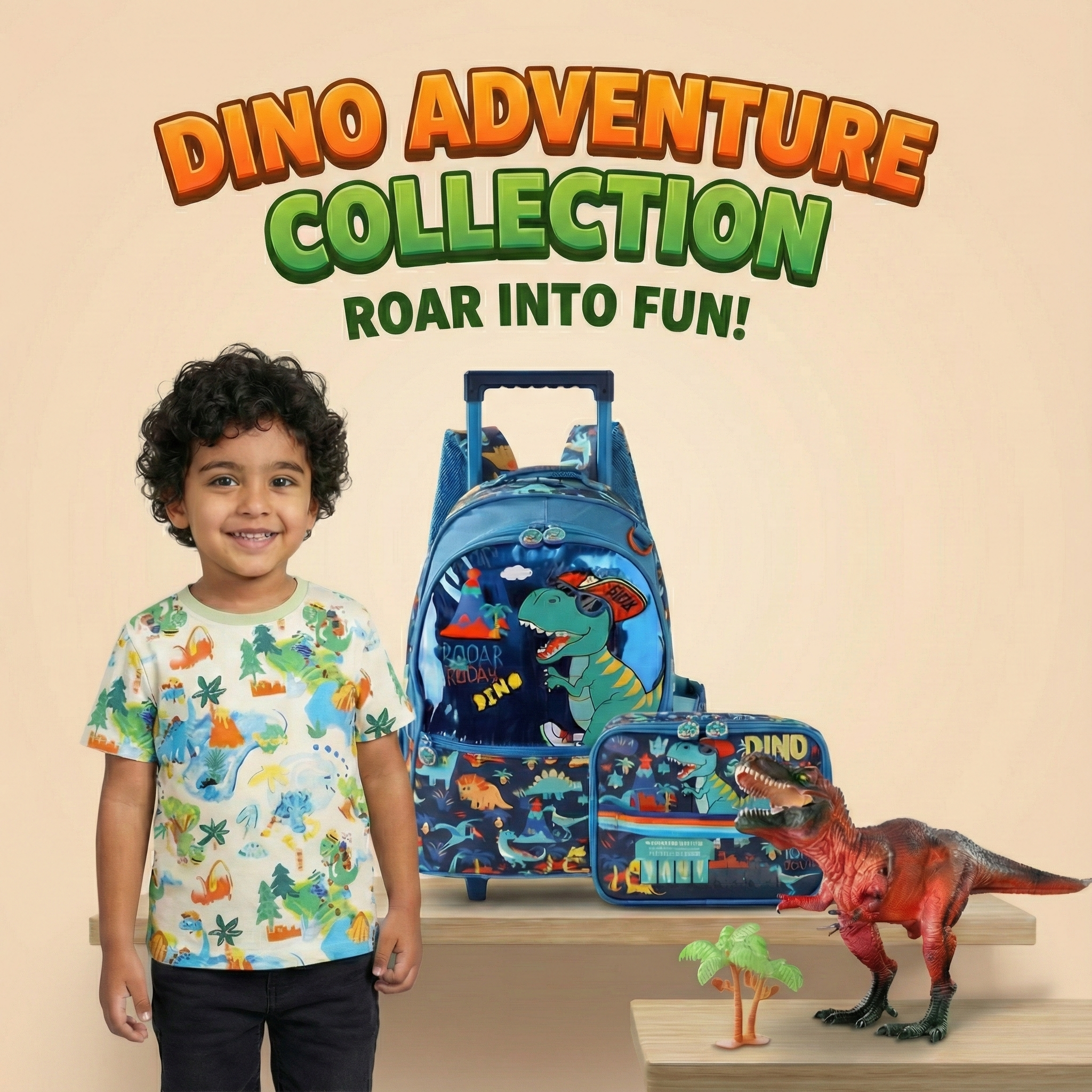 Dinosaur Rolling Backpack & Insulated Lunch Bag Set for Kids