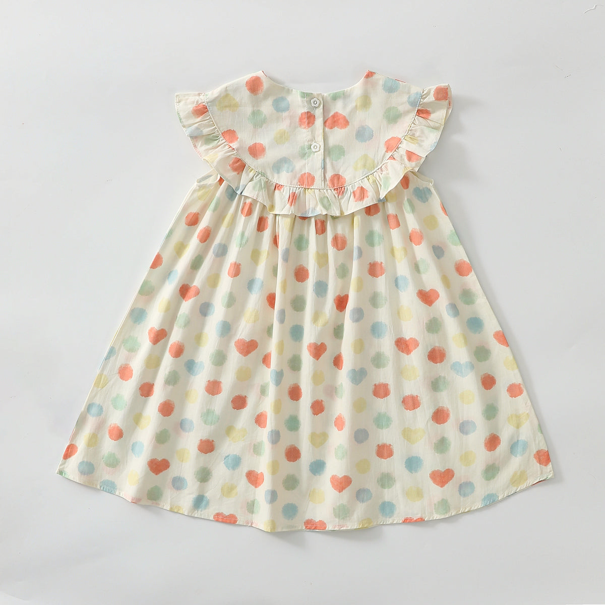 فستان بياقة دمية منقوش بنقاط ملونة على شكل ورقة لوتس