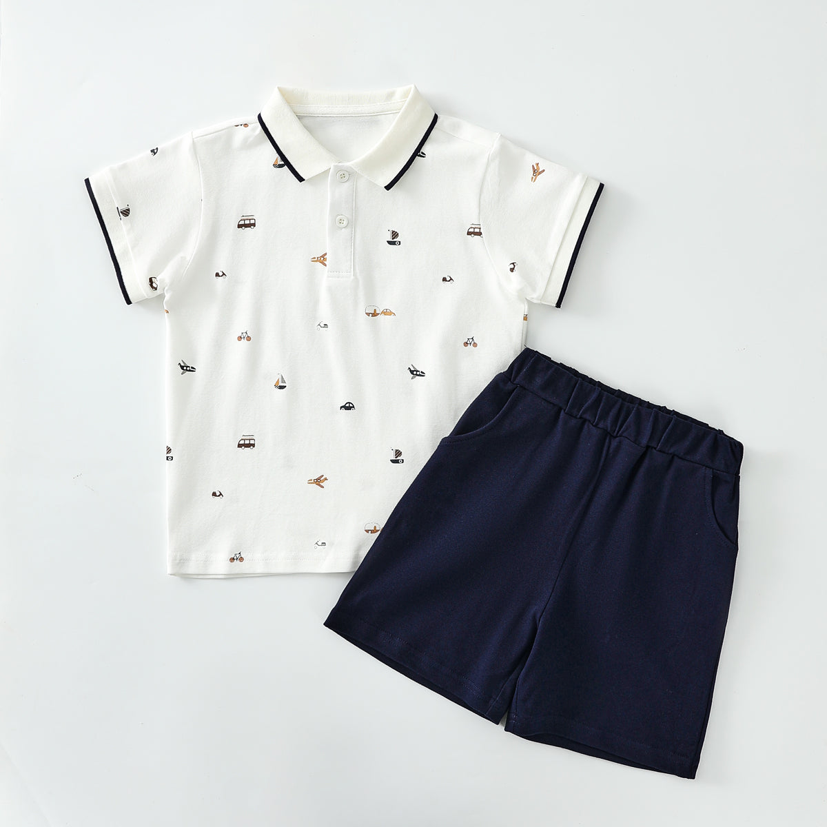 طقم قميص بأكمام قصيرة بطبعة تمساح لطيفة
