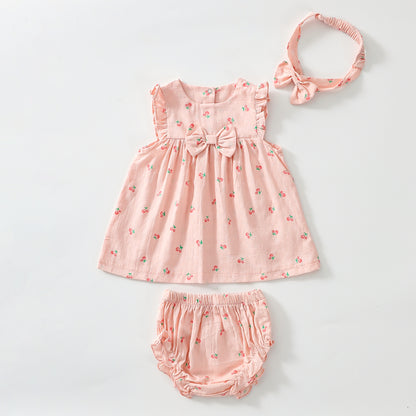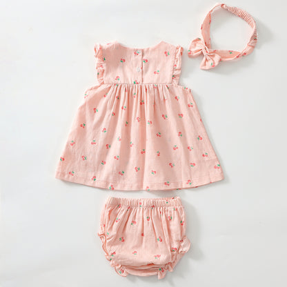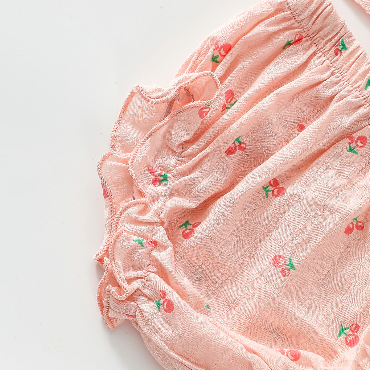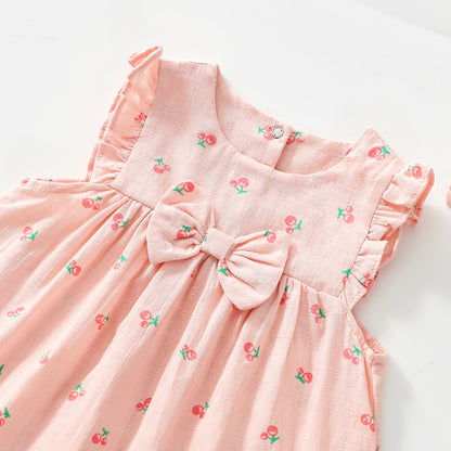 طقم بناتي خريفي من قطعتين بطبعة كرز، توب بدون أكمام وتنورة، قطن سميك ومريح مثالي للخروجات اليومية والأنيقة في الطقس البارد.