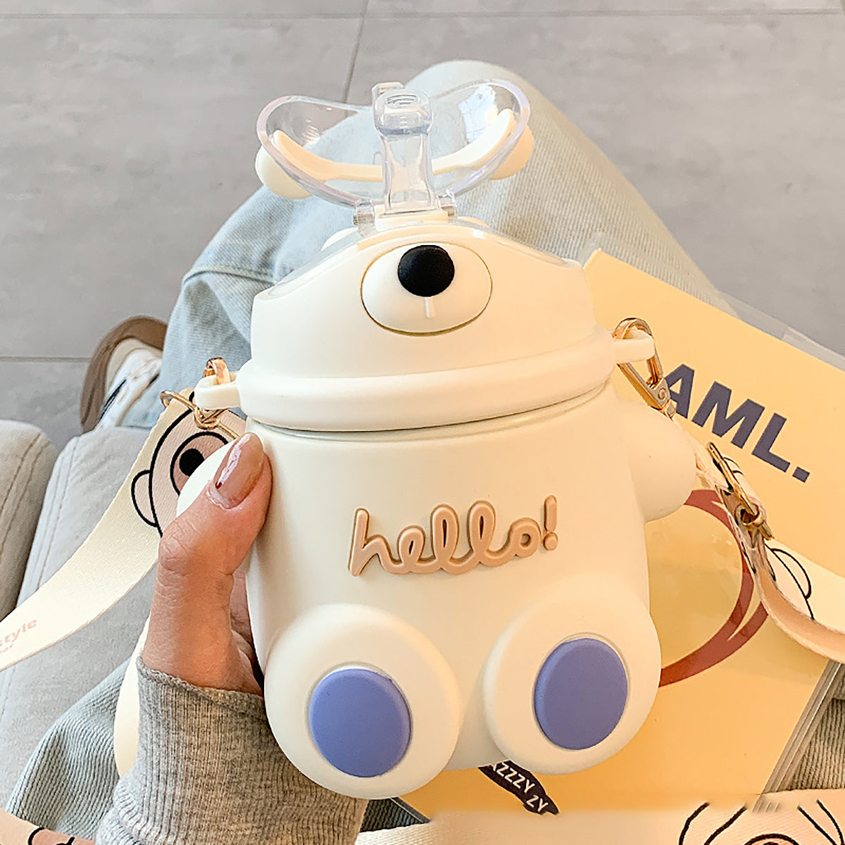 520ml Portable Straw Bottle with Crossbody Strap